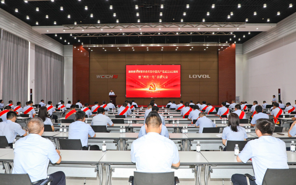 6月30日上午,潍柴雷沃智慧农业庆祝中国共产党成立102周年暨“两优一先”表彰大会在科技报告厅召开。在家的公司总经理助理级以上领导、各单位党政负责人、“两优一先”表彰对象及各单位党员代表、新发展党员参加会议。
