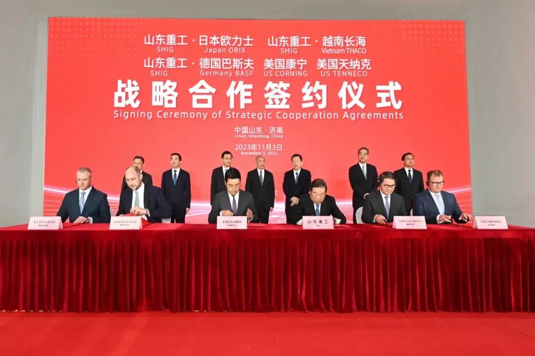 山东重工集团分别与日本欧力士集团签署产品出口金融支持战略合作协议;与越南长海集团签署当地化制造战略合作协议;与德国巴斯夫公司、美国康宁公司、美国天纳克公司签署潍柴动力空气净化产业链战略合作协议。