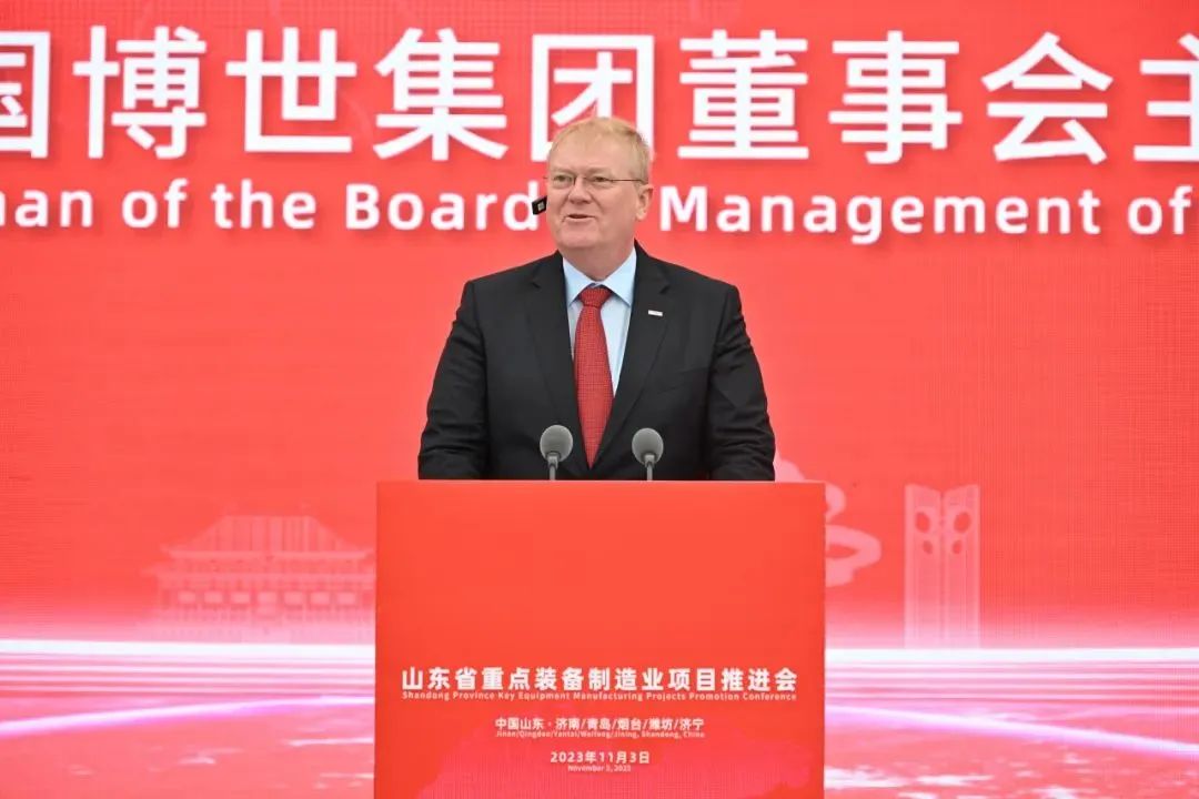 德国博世集团董事会主席史蒂凡·哈通致辞表示,博世将携手山东重工为交通领域提供更高效、更绿色、更智能的解决方案,也借此推动中国产业和经济的发展以及全球科技的进步。