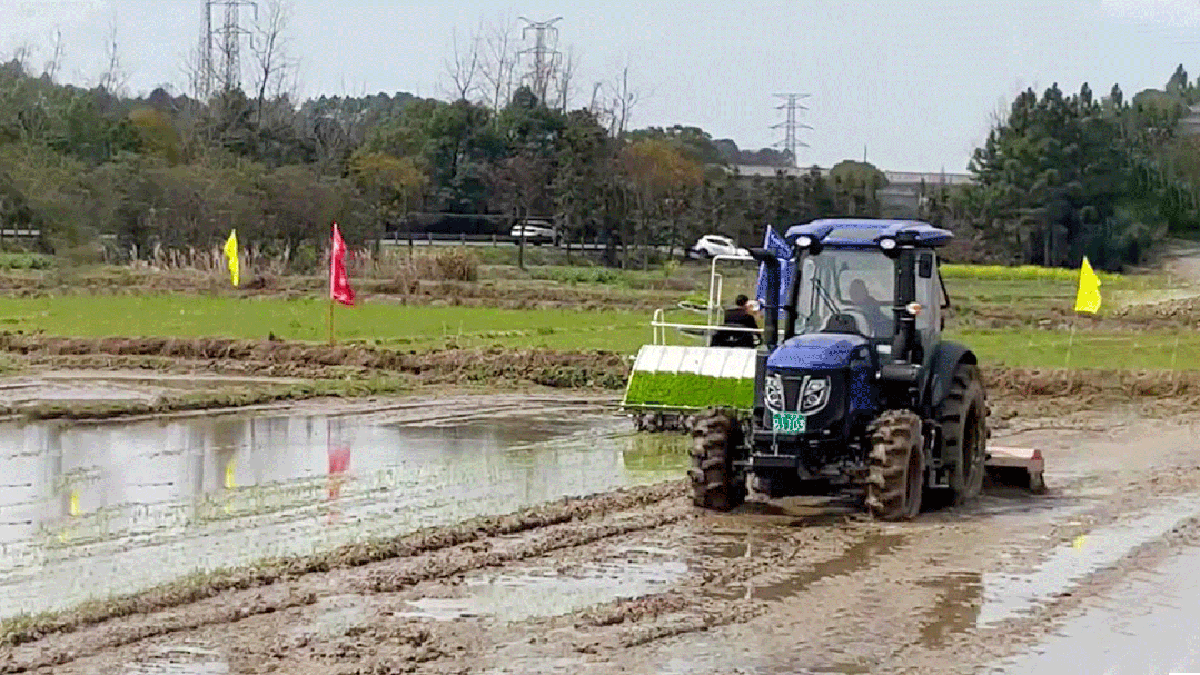 无人耕整、无人插秧、无人收获……在工作人员手中,复杂的农机驾驶操作被集成到一部移动设备之中。只需轻点屏幕,“铁牛”便会按照指令完成各类作业,“旋耕、插秧、收割”样样精通。相比于传统人工插秧,配装导航设备的无人插秧机灵活穿梭在田间,前行、转弯、掉头……一株株茁壮的秧苗便被植入田中,不仅效率高、劳动强度低,而且苗距苗深整齐划一,为后续作物生长及田间管理打下良好的基础。