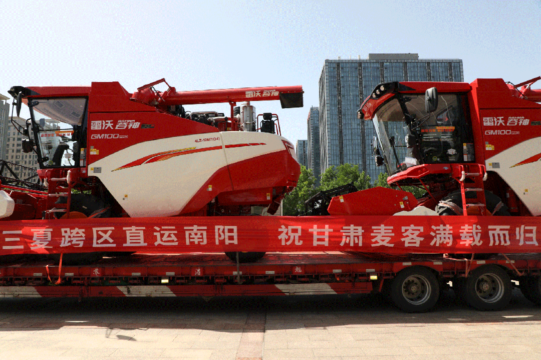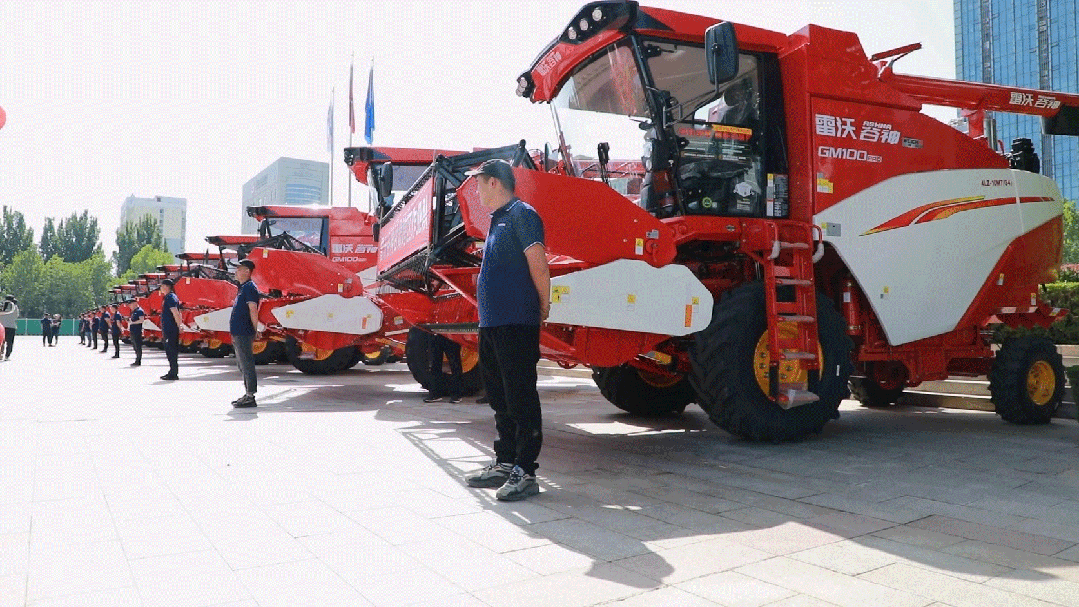 “我参加跨区机收14年,用过7台收割机,从第一台车开始就认准了雷沃谷神,这已经是我第三次来厂提机了。”来自甘肃省张掖市民乐县的忠实用户张涛坐在驾驶室里,对他的“新搭档”赞叹不已!“今年我订购的是一台雷沃谷神GM100 Pro,就看中它效率高、油耗低,今年的智能化功能又进行了升级,开着特别舒服,不仅夏季能收小麦,秋季换装配件后还能收割玉米、高粱。我们两口子对今年的跨区作业特别有信心。”