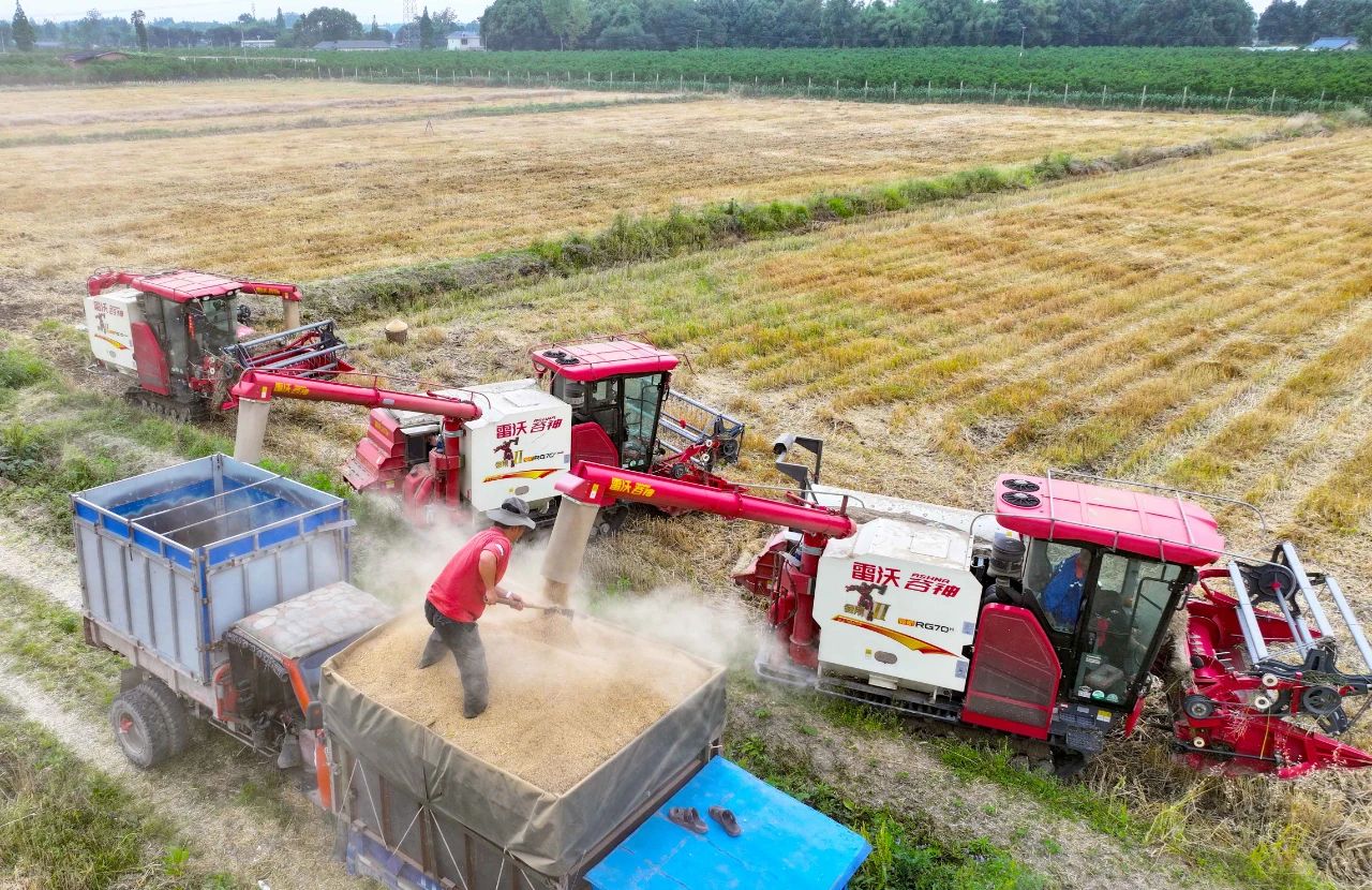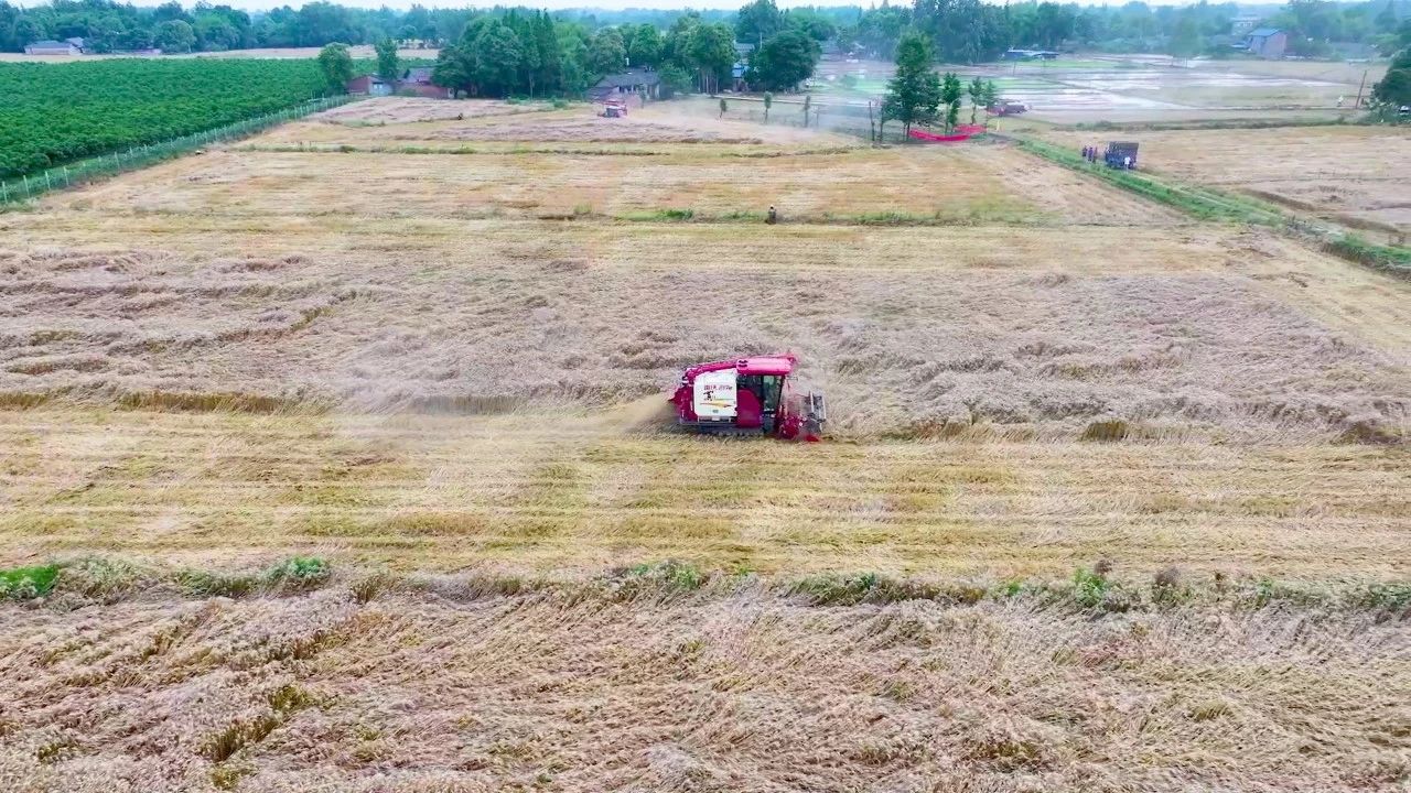 近日,崇州区域小麦收获进入高峰期