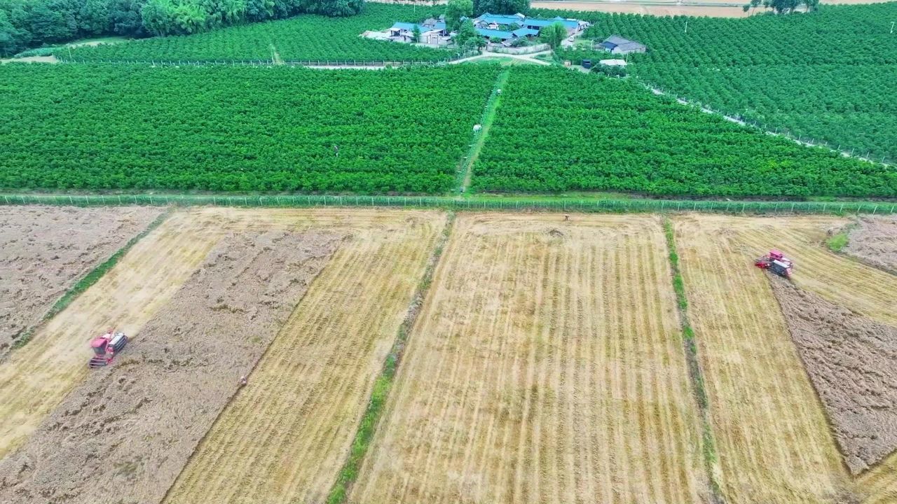 收割小麦的同时,秸秆就地粉碎还田,为下一季作物生长提供养分和有机质。