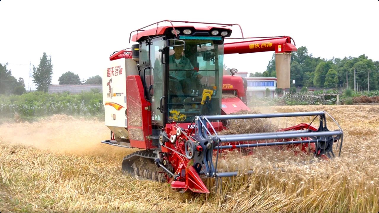 “因为前段时间天气原因,部分地块小麦出现了倒伏。像这家农户的麦子,我们已经收了五六年。他们对雷沃谷神收割的效果很放心,收的干净,遇到烂泥田或者倒伏的情况,收割起来也很轻松。”跨区团队负责人肖先生介绍。