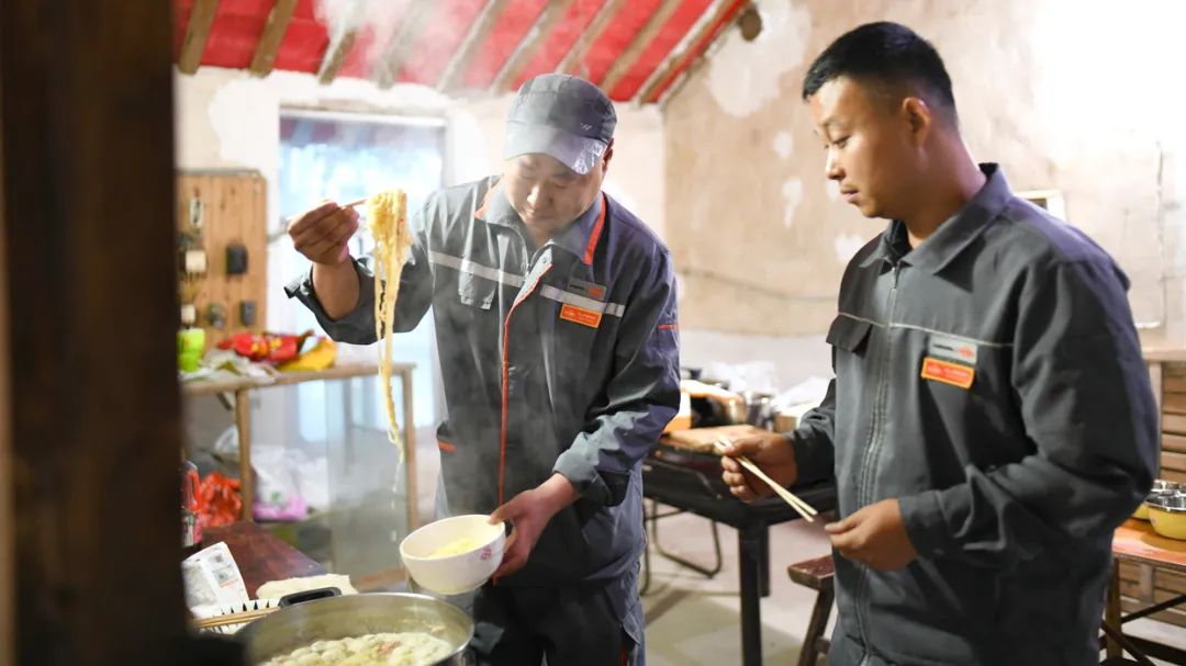 晚上九点,三人终于有时间坐下来吃一顿简单的晚餐。“住在岛上就是离用户近,吃住简单一些都行,得保证第一时间赶到服务现场。”服务队员王光磊介绍。