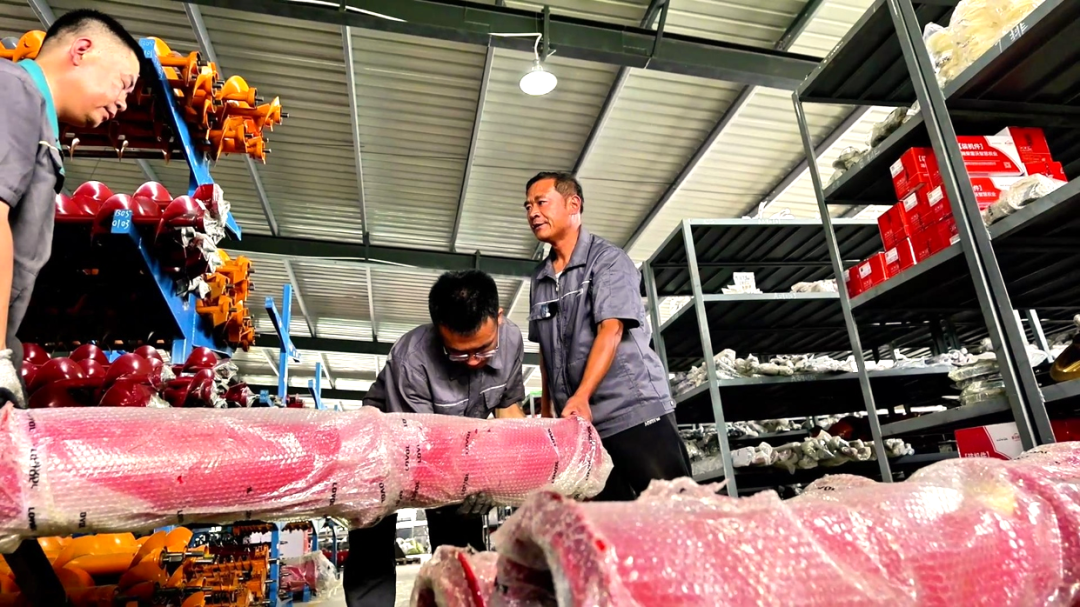 “麦收期间工作量增大,公司加派了三个人。早六点到晚十点是常态,确保卅字军有充足的配件供应,最大程度地方便用户。”张善密一边和同事们整理货架,一边介绍。