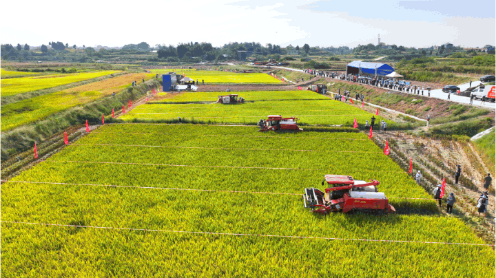 8月26日,“山城”重庆的天气“热情似火”,合川区隆兴镇玉河村的优质粮油示范基地里稻香阵阵,2024年重庆市“潍柴雷沃杯”水稻机收减损技能大比武活动火热开赛。
