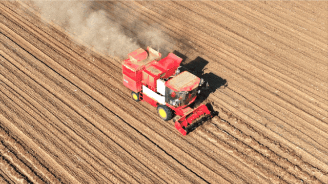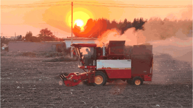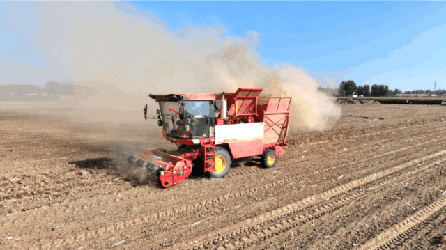 谷神驶过,沙地里的尘土被卷起,一场花生机收的大片正在上演。