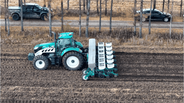 随后,潍柴雷沃P2404-7V智能拖拉机搭配18行电驱播种机演示无人播种作业,智能、高效、精准的播种效果受到现场观摩人员一致好评。据悉,通过智能无人驾驶,该产品组合可实现24小时连续作业,定位精度远超人工控制水平,同时保证了作业质量和一致性,有效提升了土地利用率和生产质量,精准作业、增产增收效果显著。