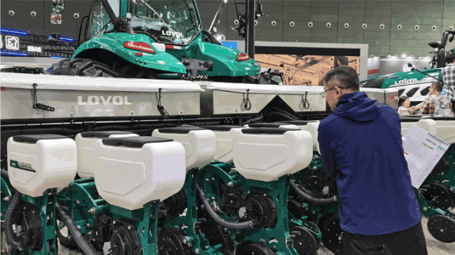 其中,最为引人关注的无疑是潍柴雷沃18行电驱精量播种机, 能够实现一机多用,可精量播种玉米、大豆、高粱等农作物,可实现12/18行变形播种。它采用电驱气吸式排种器,株距均匀性好,漏播率低;作业速度达12km/h,速度快、效率高;四连杆仿形,配独立限深轮,无级调整,播深一致性好;还具有漏播、堵播、粒数统计、作业面积统计等智能监控系统功能,能够进一步提升作业质量,增产效果更为显著。