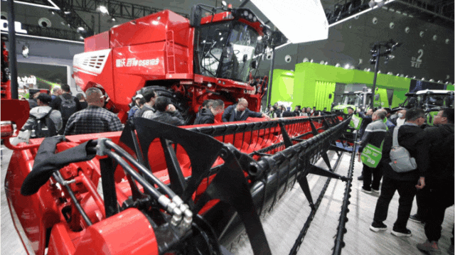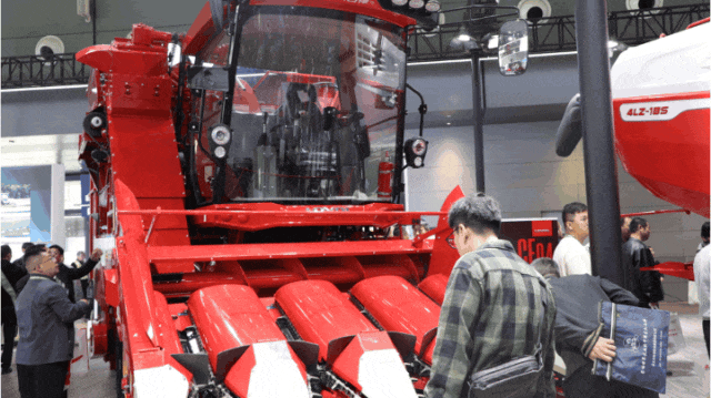 在收获机械展区,潍柴雷沃智慧农业不仅带来了雷沃谷神CF04茎穗兼收玉米机、雷沃谷神RG系列履带机等备受客户欢迎的明星产品,由潍柴雷沃智慧农业自主研发的国产最大喂入量小麦机——雷沃谷神GS8189首次亮相全国会,彻底打破了长期以来大型谷物联合收割机被国外垄断的窘境,使我国大喂入量谷物联合收割机成功跻身国际先进水平。